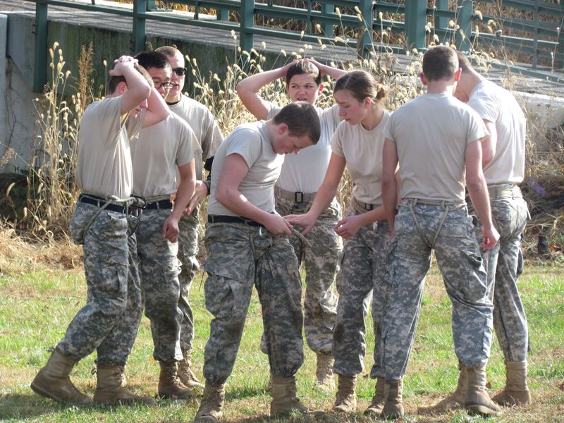 A part of the training culminates in a competition wherein teams of eight jrotc cadets must cross an obstacle using one rope and only the first and last cadets are allowed to touch the obstacle.