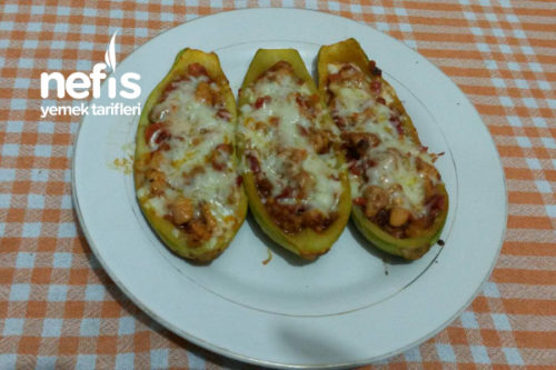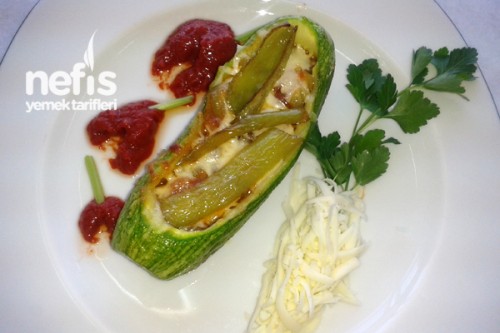 Daha hafif alternatifler için kabak sandallar peynirli iç harç ile doldurulabilir.