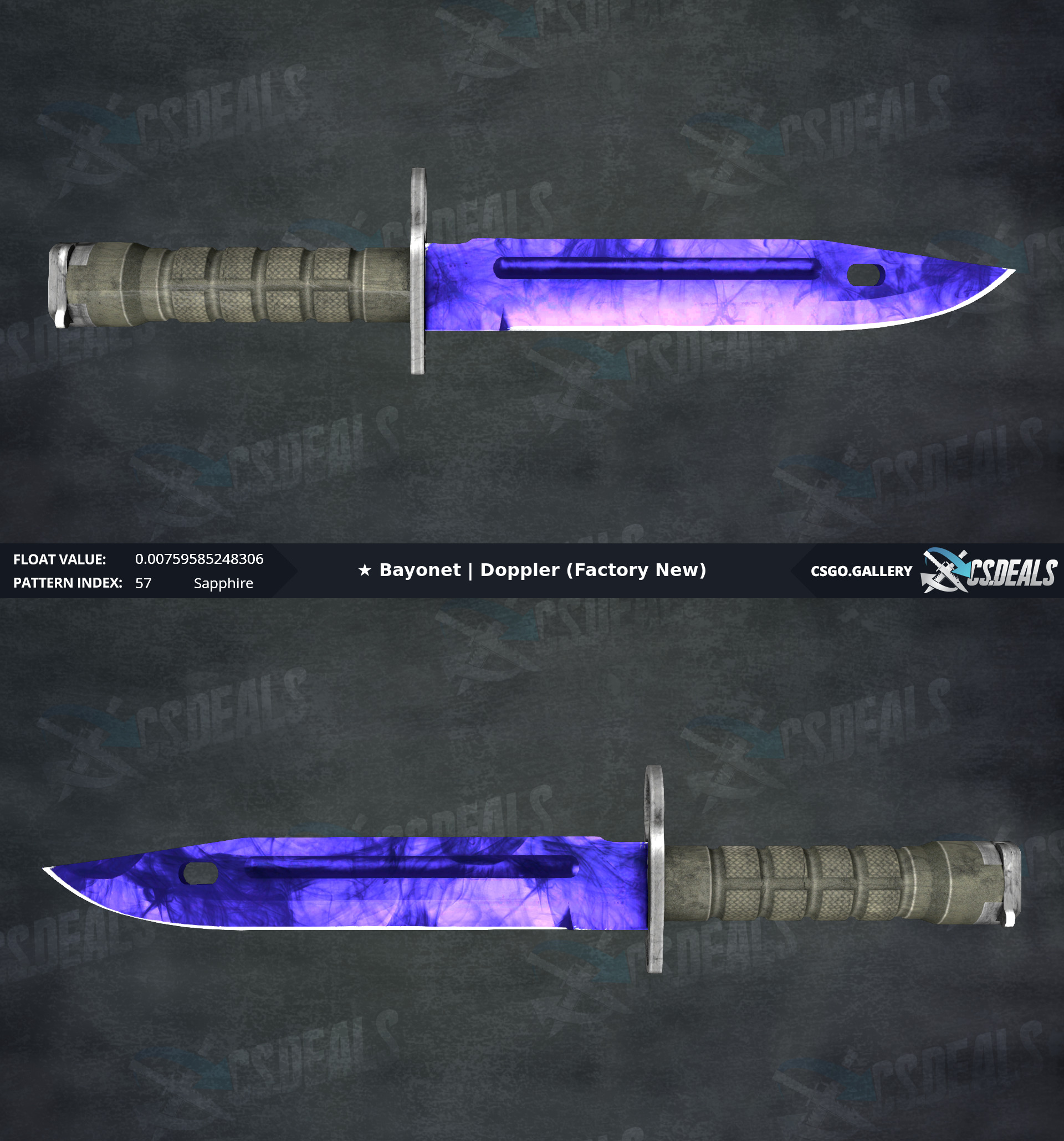 Float value of the skin ranges from 0 00 to 0 08 which makes karambit doppler sapphire available only in factory new and minimal wear condition.