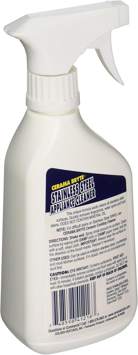 Stainless steel spray removes dirt fingerprints and grease from any kind of stainless steel appliance and surface restoring the bright shine for a bold clean look.