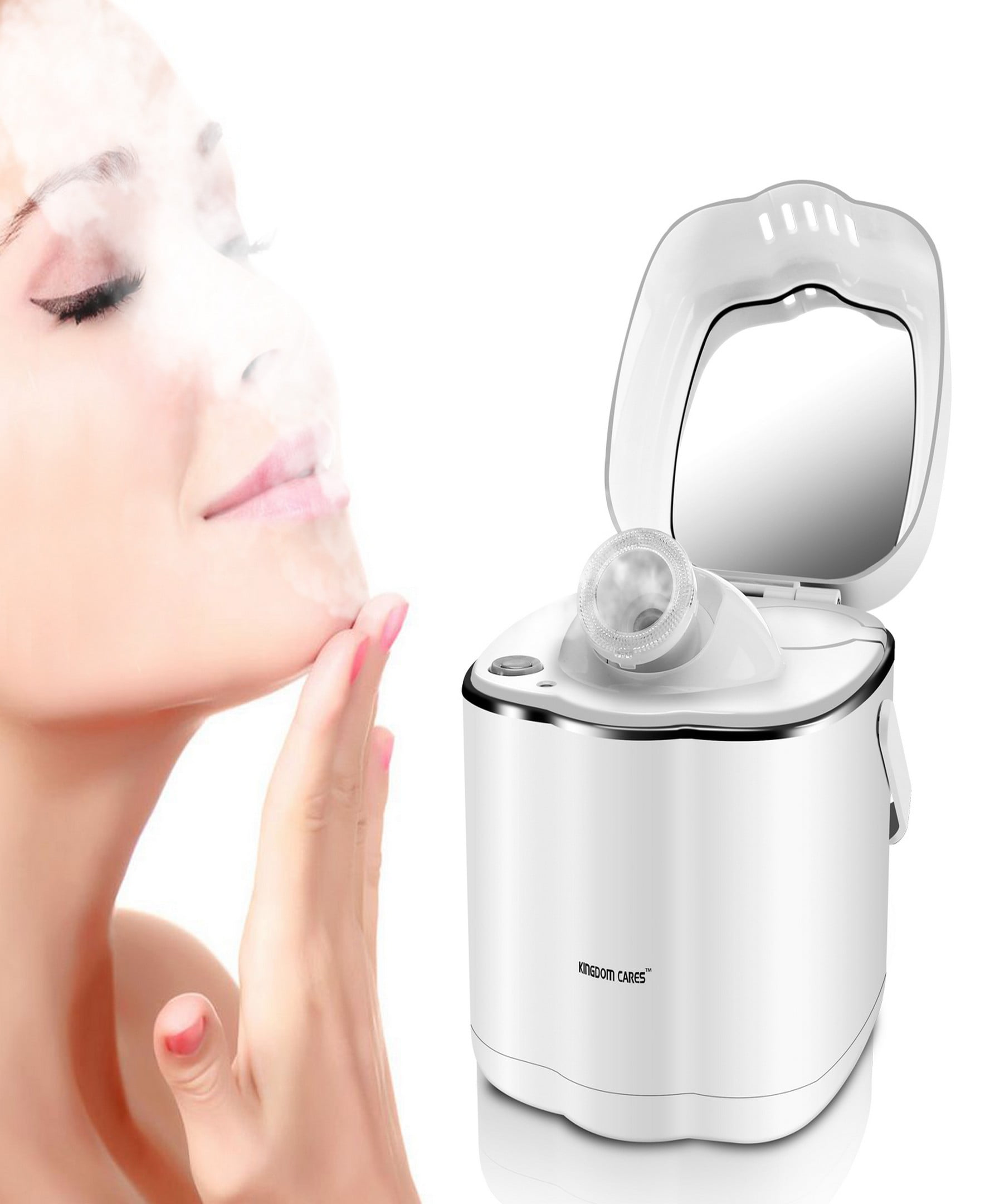 The kingdom cares hot mist facial steamer delivers nano ionic steam to effectively moisturize your face relieve dryness and help your skin look relaxed and smooth.