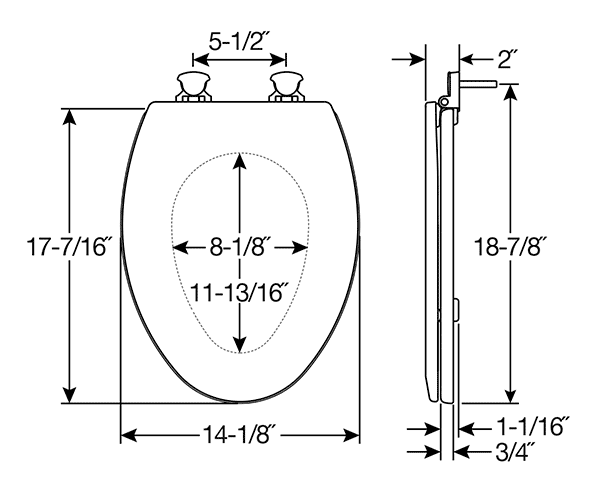 The toilet seat you will receive is made by bemis the leading toilet seat manufacturer and is designed to accommodate the majority of round front or elongated front toilet bowls found in the united states.