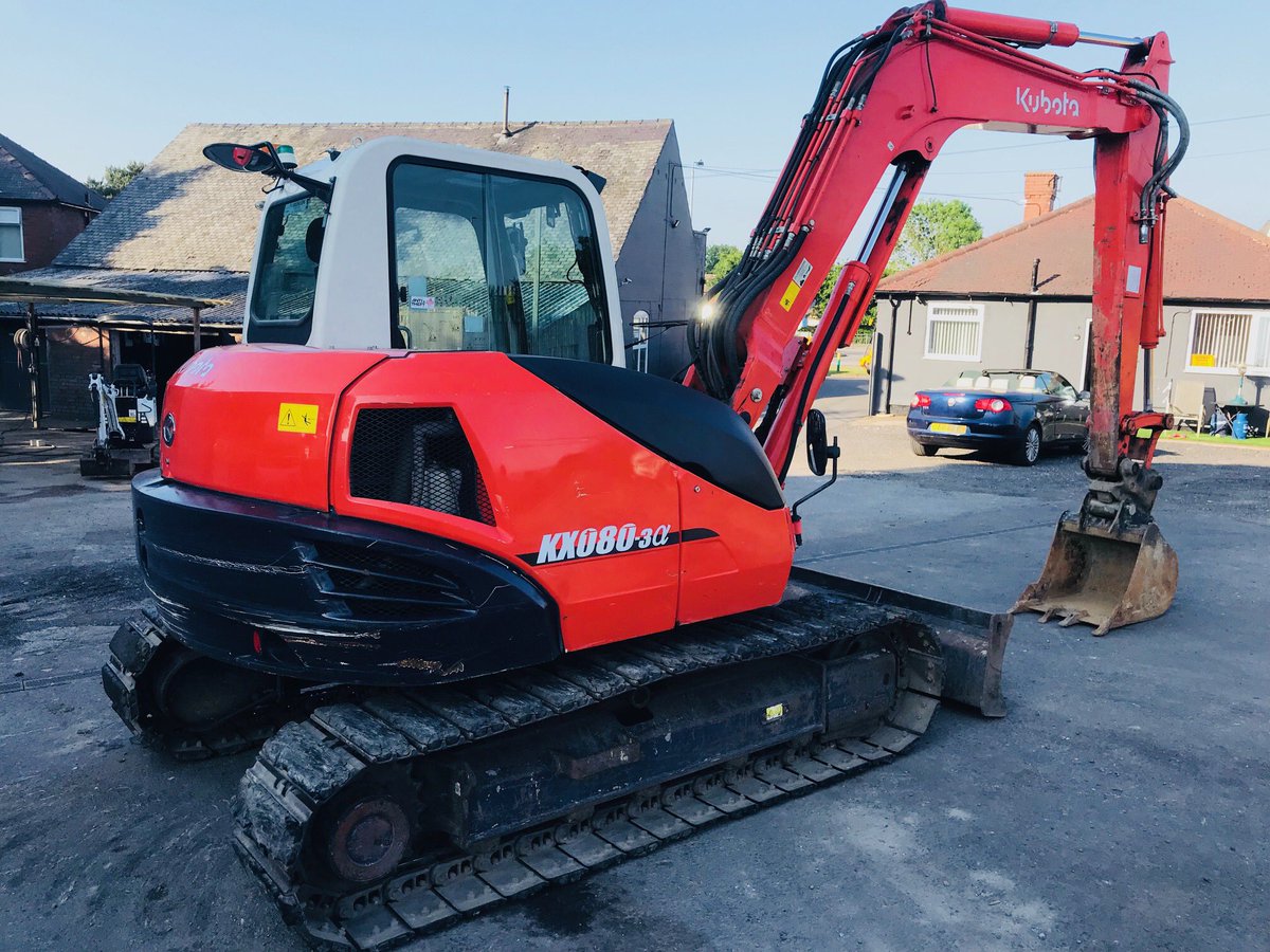 2015 model kx080 4r3a excavator with air conditioned and heated enclosed cab.