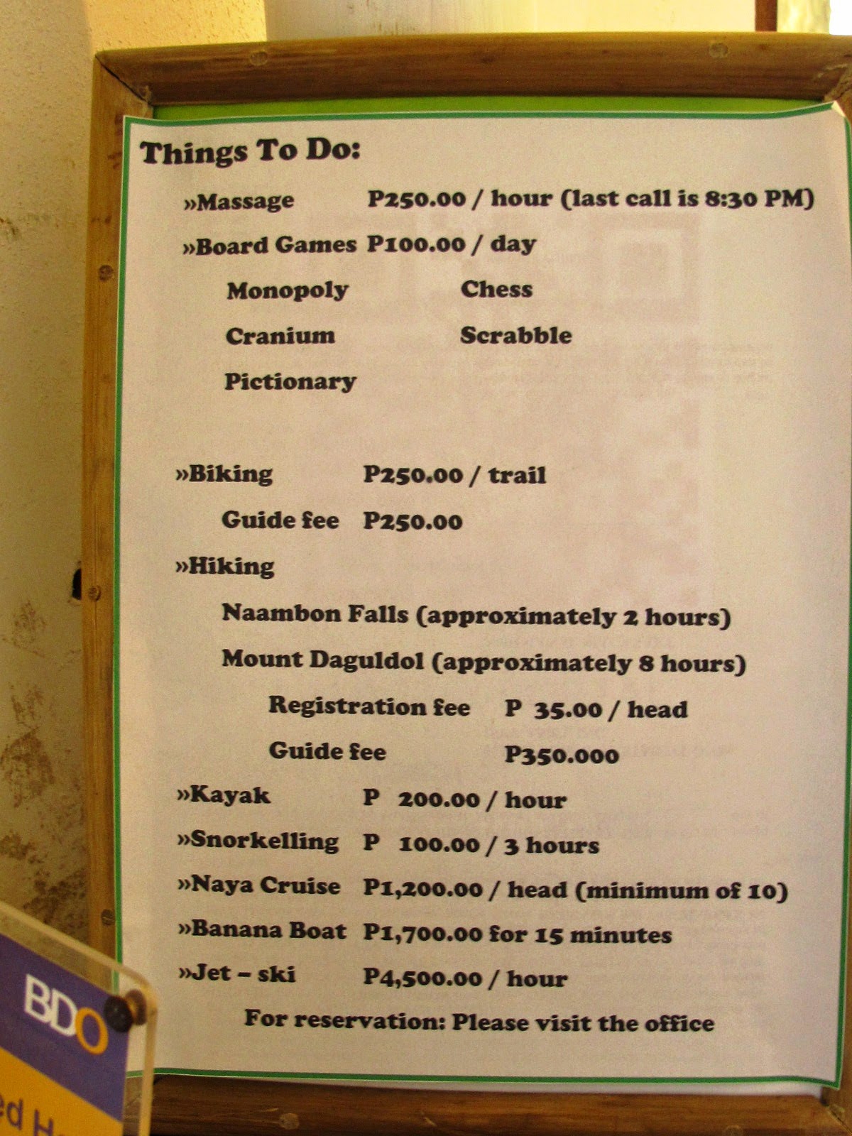 There will be an additional charge at the resort for each person up to 1500 peso.