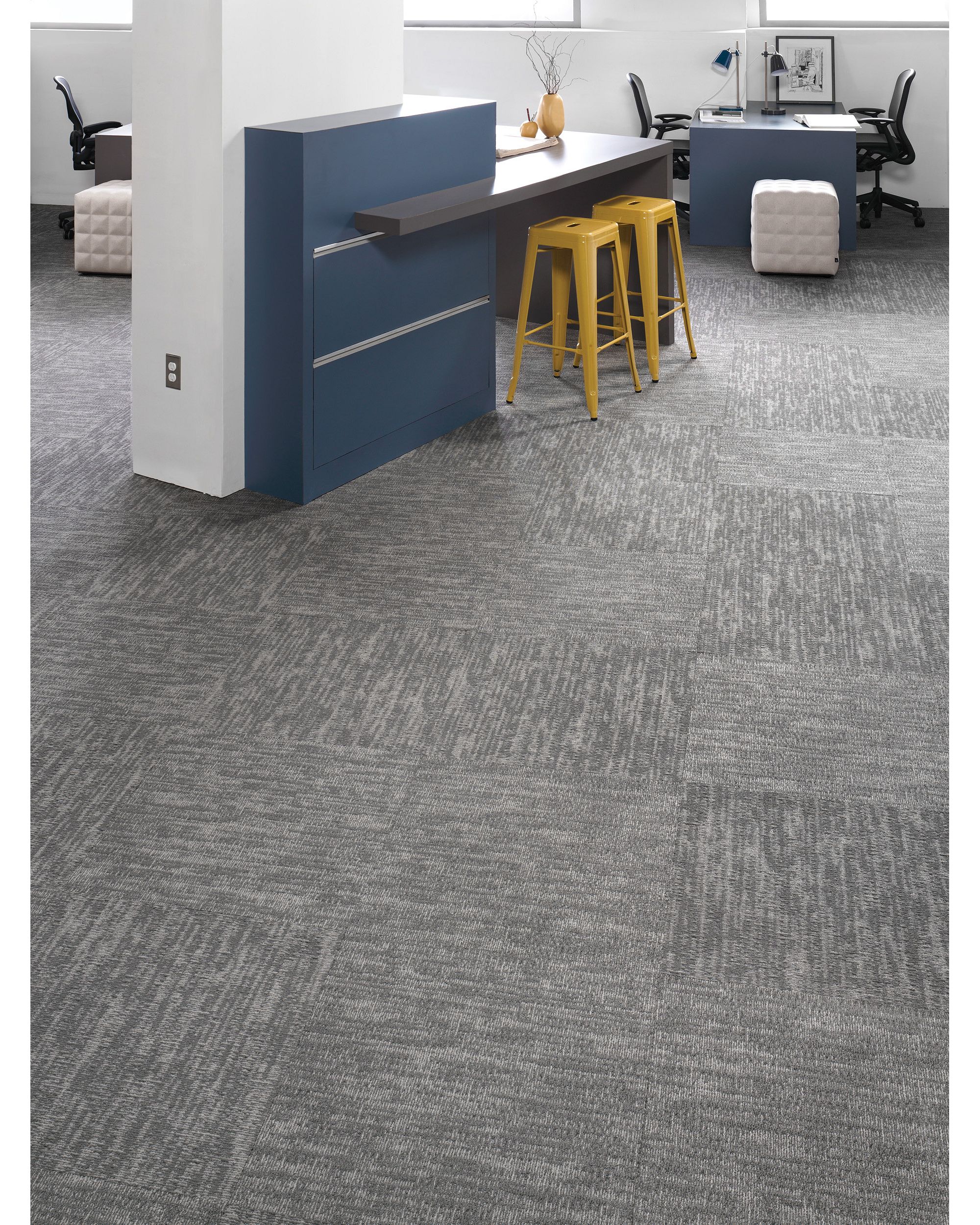 Carpet tile is a durable solution for the commercial space allowing added texture edgy combinations and endless options in running line and custom patterns.