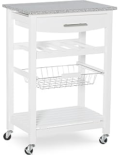 Spacious wooden kitchen cart with granite inlaid top black and gray add some extra storage and space to your kitchen with the inclusion of this kitchen cart.