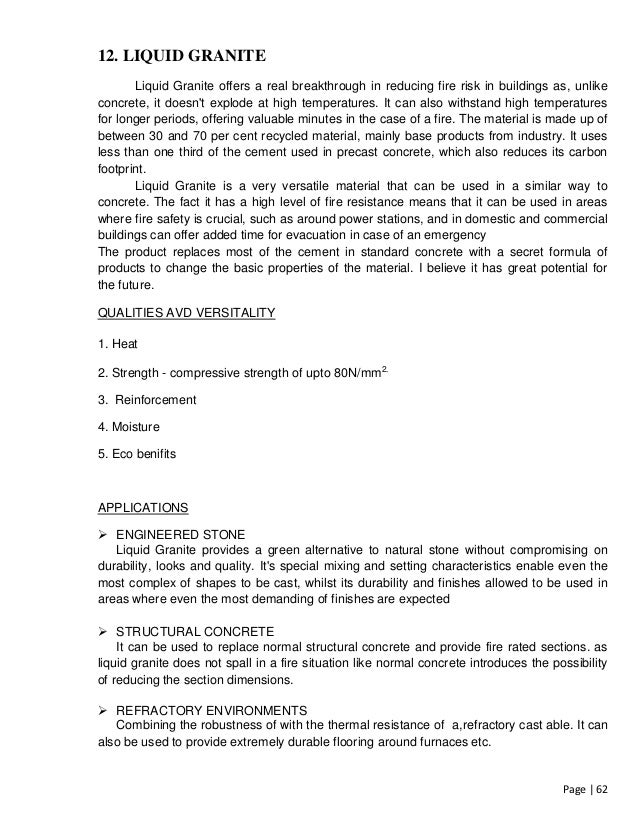 Liquid granite offers a real breakthrough in reducing fire risk in buildings as unlike concrete it doesn t explode at high temperatures.
