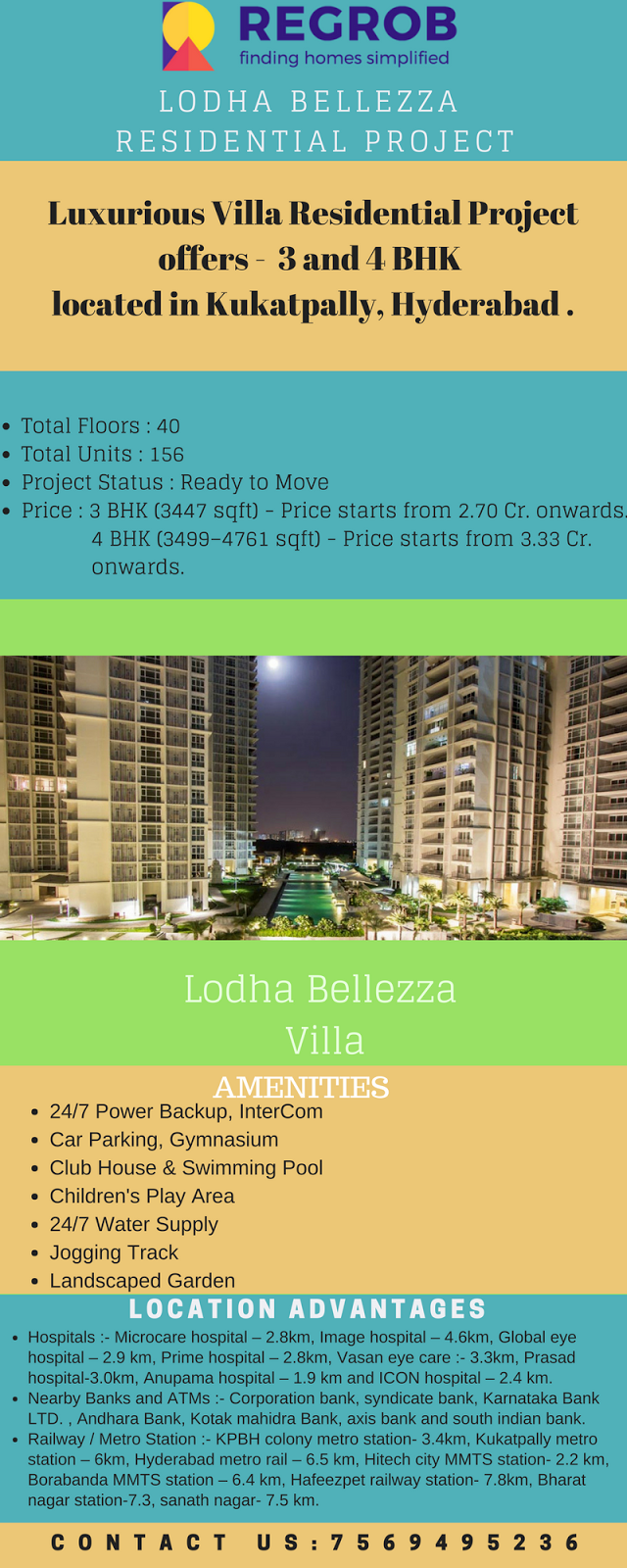 Lodha bellezza kukatpally is a villa project that has total 362 units of 3 4 bhk villas.