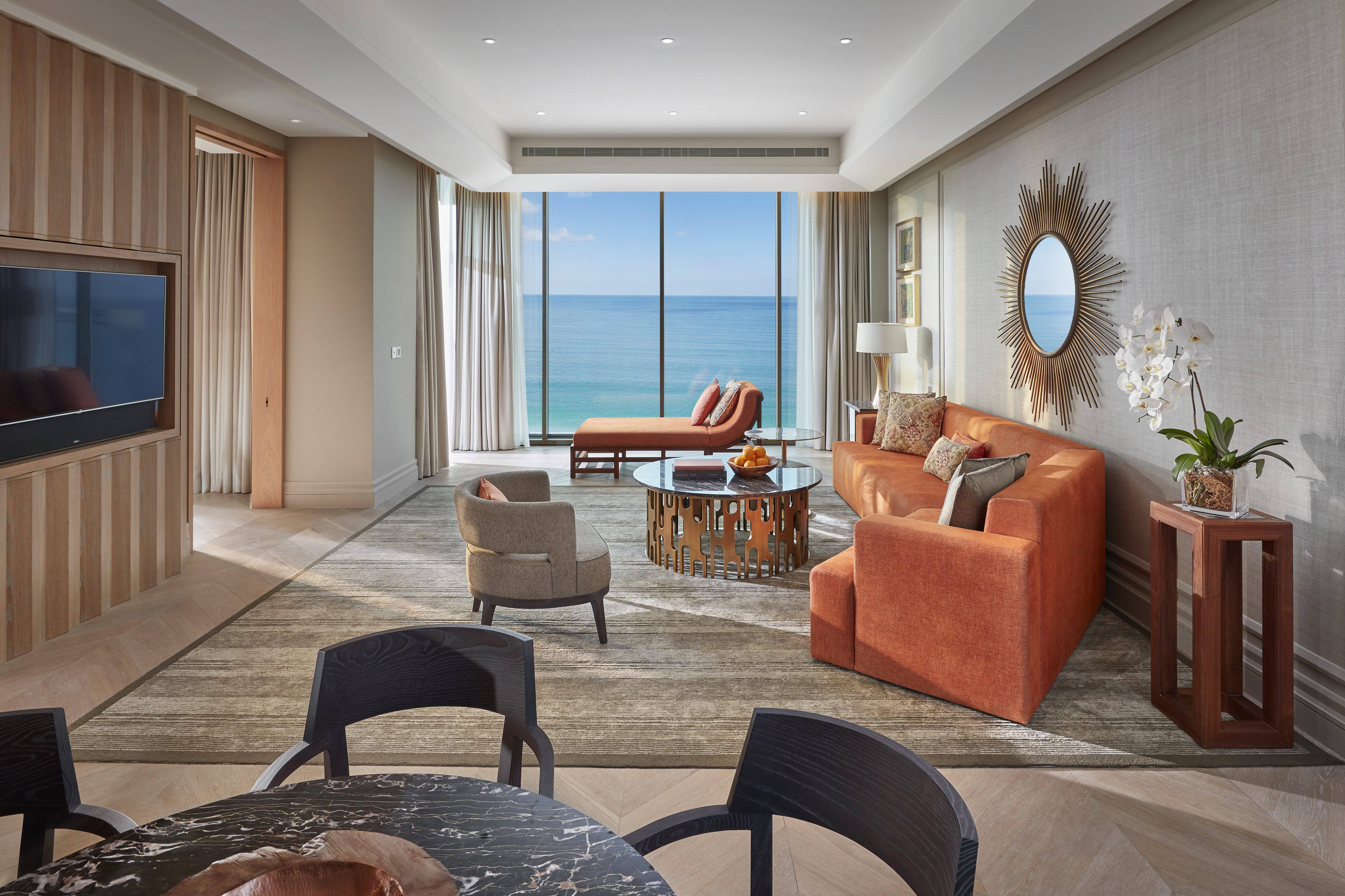 Overlooking the city this one bed suite has large living room and club access.